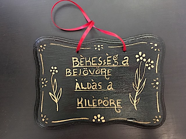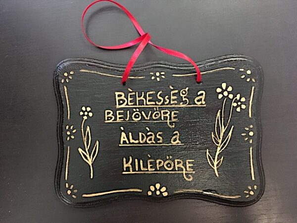Magyaros, kézzel festett fatábla dísz