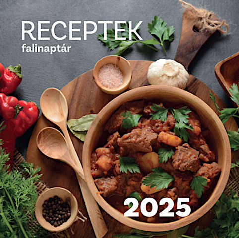 2025-ös falinaptár, receptekkel, látványos ínycsiklandozó képekkel.