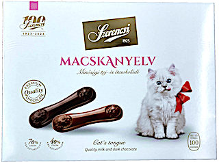 Minőségi tej és étcsokoládé , 125 éves magyar macskanyelv 40%-os tej és 70%-os étcsokoládéval
